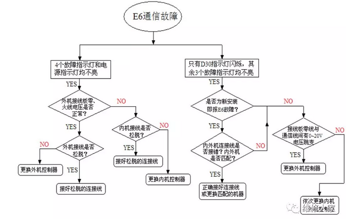 ?倒扣電器盒的變頻外機E6通訊故障處理流程如下: